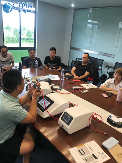 凈信資深工程師沈工在講解儀器實(shí)際操作問(wèn)題